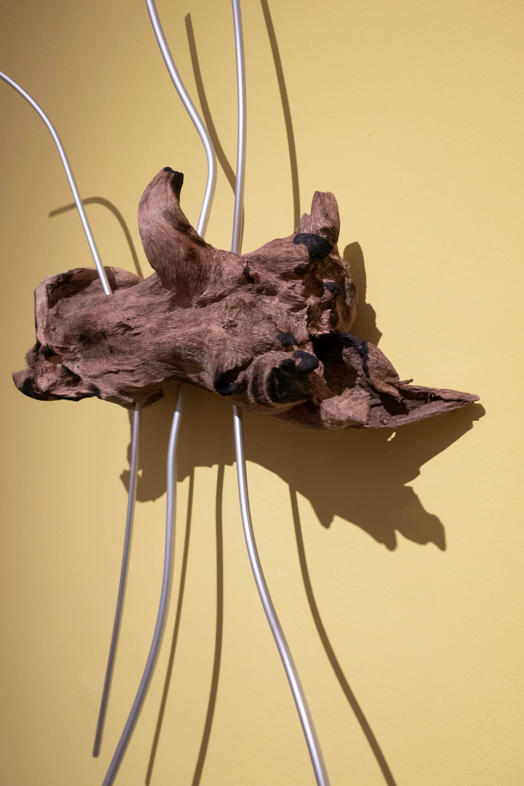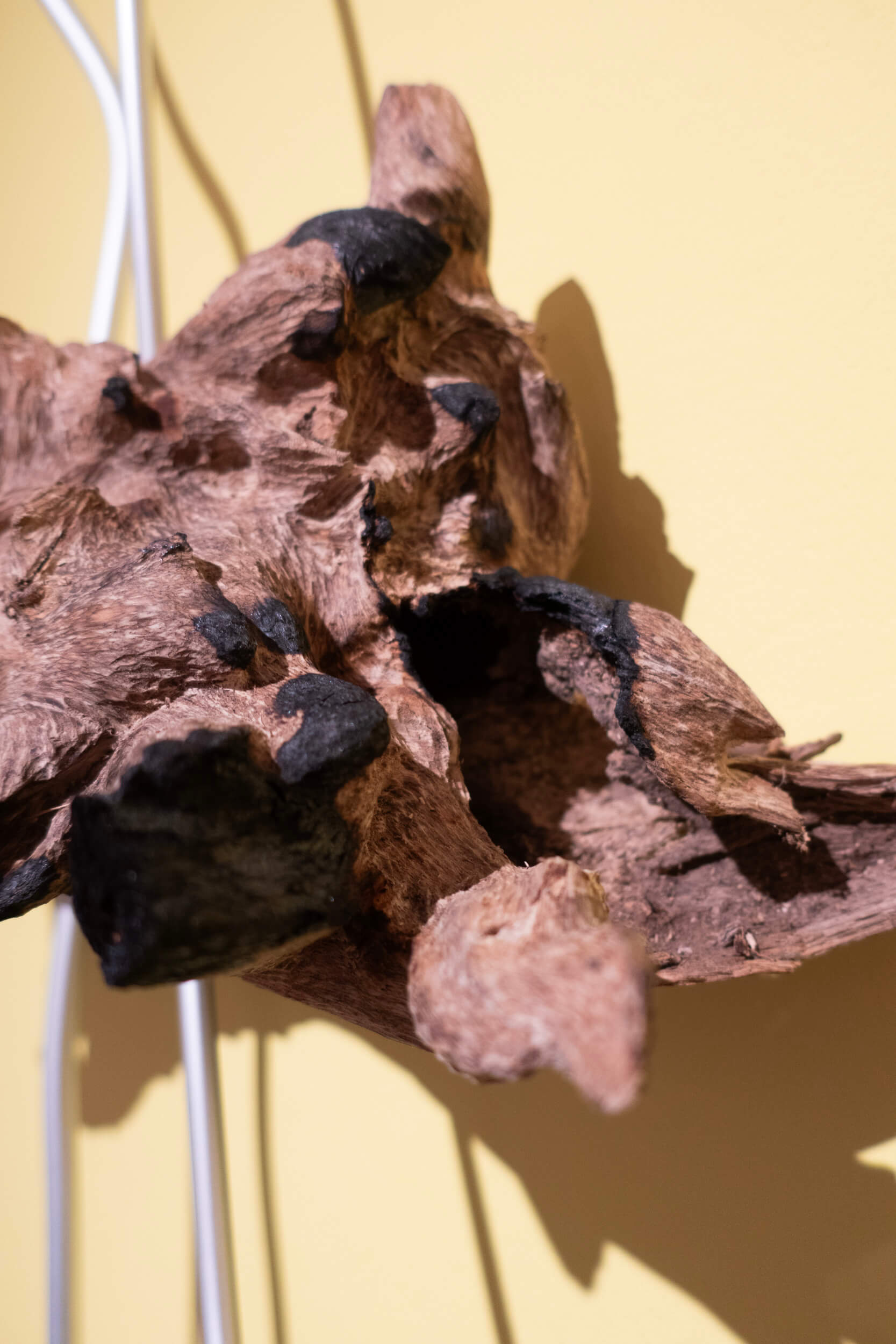 The multimedia installation consists of two parts: one in our real world and one in the virtual world. In the real world, I intend to create an empty space filled only with the scent of agarwood, objects and soil. When the audience enters the space, they can put on VR goggles to enter the installation. The VR installation takes the form of an absurd garden filled with Aquilaria trees and agarwood that I captured with a 3D scanner. Between the tree bodies, which are covered with holes, scars and wounds, the visitor can explore the garden at will. On the horizontal, a performer who embodies the agarwood as a child of pain dances to the watery sky. A performance, performed by the artist Hiền Hoàng, was hold at the opening of the exhibition.